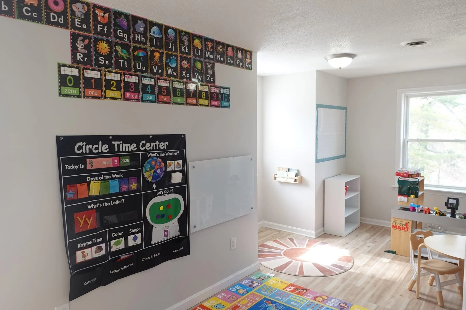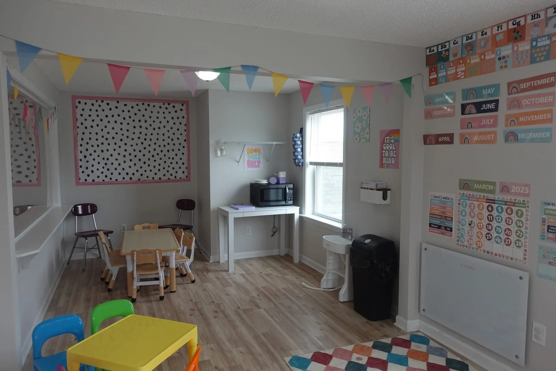 Classrooms “Littles” Lower Level Welcome to our cozy center where young minds embark on a journey of discovery and growth! Here is a small glimpse into the warm and welcoming rooms. Infant 1 6 weeks to 6 months Infant 2 6 months to 12months Toddler 1 12 months to 24 months Classrooms “Bigs” Upper Level Toddler 2 24 months to 36months Preschool 36 months to 4 years Pre-Kindergarten4 years+